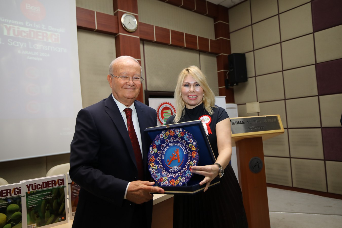 YÜciTA Dergisi Editörü Doç. Dr. Mehmet Zanbak, derginin dördüncü sayısında yer alan içeriklerden bahsetti. Zanbak, dördüncü sayının 572 sayfa 13 ana başlıkta 32 yazarın dergiye katkı sunduğunu ifade ederek TOBB ve İş Bankası’nın desteklerine teşekkür etti. YÜciTA ailesinin üyeleri de sahneye çıkarak konuşmalar gerçekleştirdi. Prof. Dr. Yavuz Tekelioğlu’nun kızı Tuluhan Tekelioğlu da bir konuşma yaptı. Rektör Özkan, Prof. Dr. Yavuz Tekelioğlu’na günün anısına plaket takdim etti. Konuşmaların ardından katılımcılar kokteylde Antalya’nın yöresel lezzetlerini tattı.