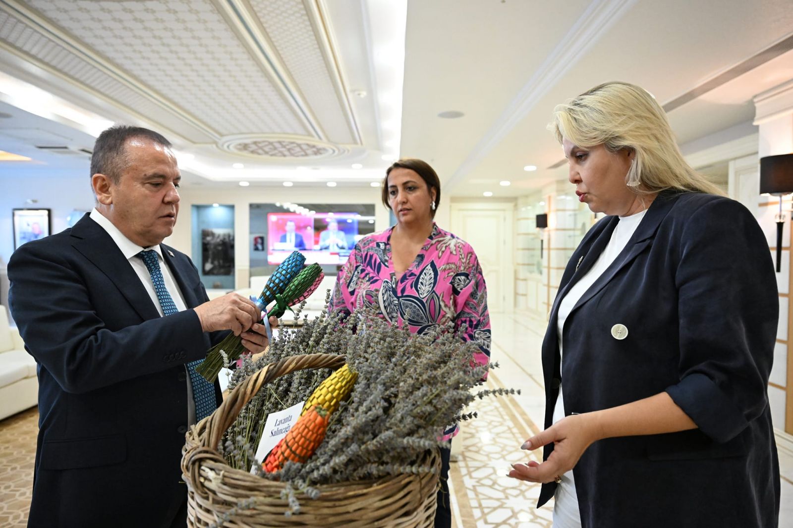Antalya Büyükşehir Belediyesi Başkan Muhittin Böcek’in yerelden kalkınma projesi kapsamında 3 yıl önce verilen hibelerle Kaş’ın Yaylakılınçlı Mahallesi’nde kurulan lavanta bahçesi üreticilere can suyu oluyor. Kaş’ın Yaylakılınçlı Mahallesi’ndeki lavanta bahçesindeki hasat edilen lavantalar ve yazar Necla Öngüç’ün projeden ilham alarak kaleme aldığı ‘Lavanta Salıncağı’ adlı kitabı Başkan Muhittin Böcek’e hediye edildi.