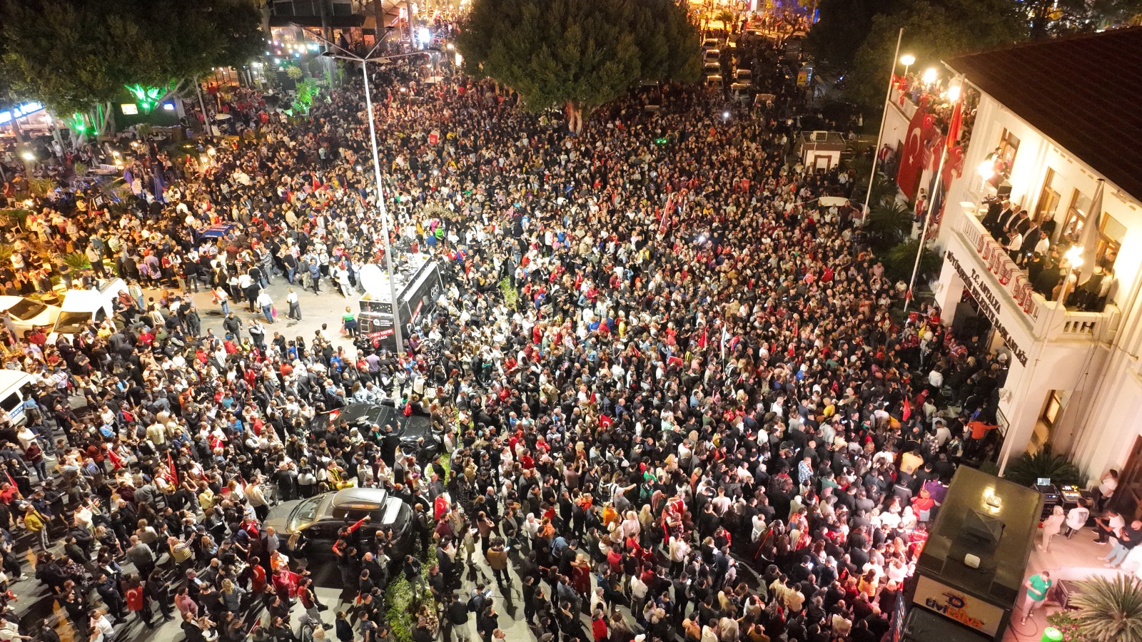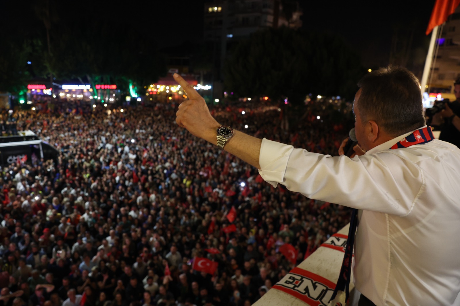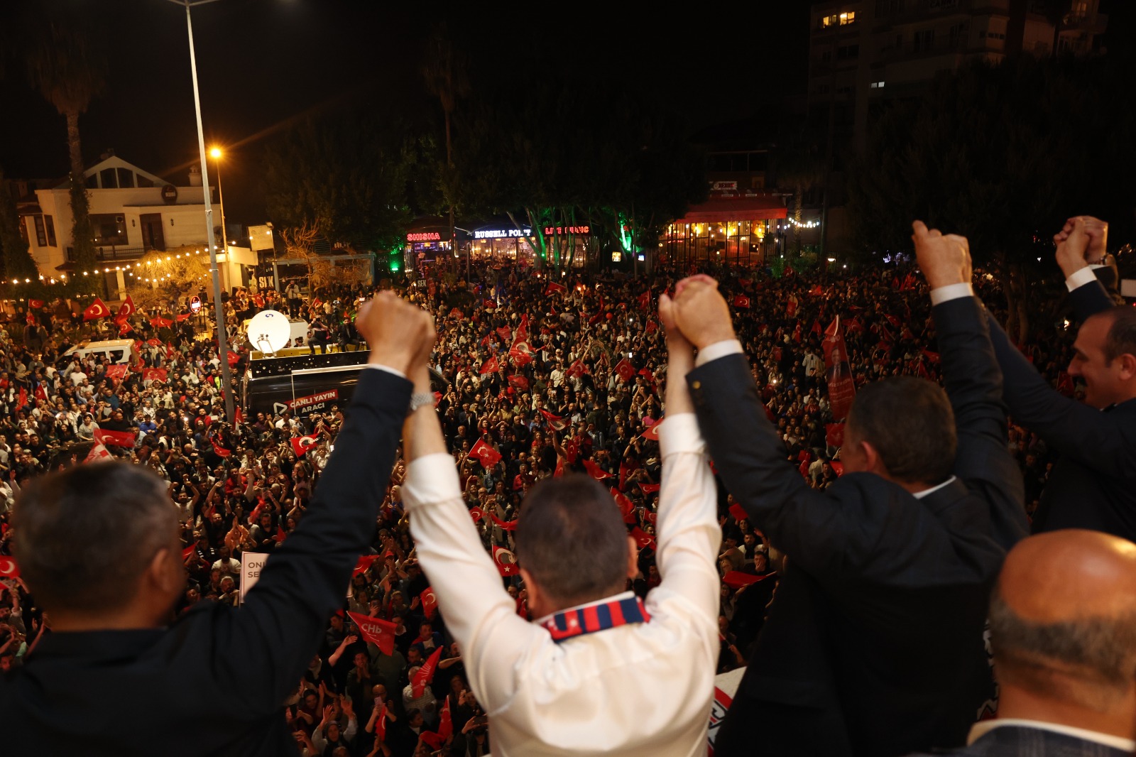 31 Mart Yerel seçim sonuçlarının açıklanmasıyla birlikte Antalya’da kesin olmayan sonuçlara göre Antalya Büyükşehir Belediye Başkanı ve CHP Antalya Büyükşehir Adayı Muhittin Böcek, seçimleri kazandı. Sonuçların netleşmesiyle birlikte binlerce Antalyalı ilk olarak CHP Antalya İl Başkanlığı önünde toplandı. Ellerinde Türk bayrakları ile sevinç gösterilerinde bulunan vatandaşlar Başkan Muhittin Böcek’in alana gelmesiyle büyük bir sevinç yaşadı. CHP İl Başkanlığı önünde toplanan halka seslenen Başkan Muhittin Böcek, tüm Antalyalılara teşekkür etti.