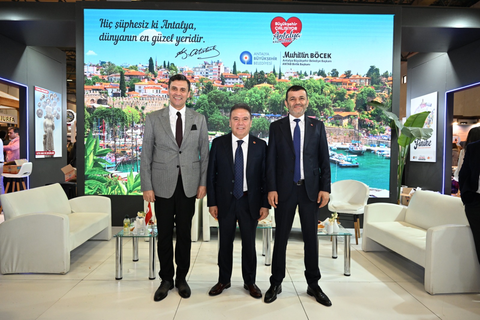 Başkan Böcek, açılışın ardından fuarın en güzel ve göz alıcı standlarından biri olan Antalya standında ziyaretçiler ile bir araya geldi.