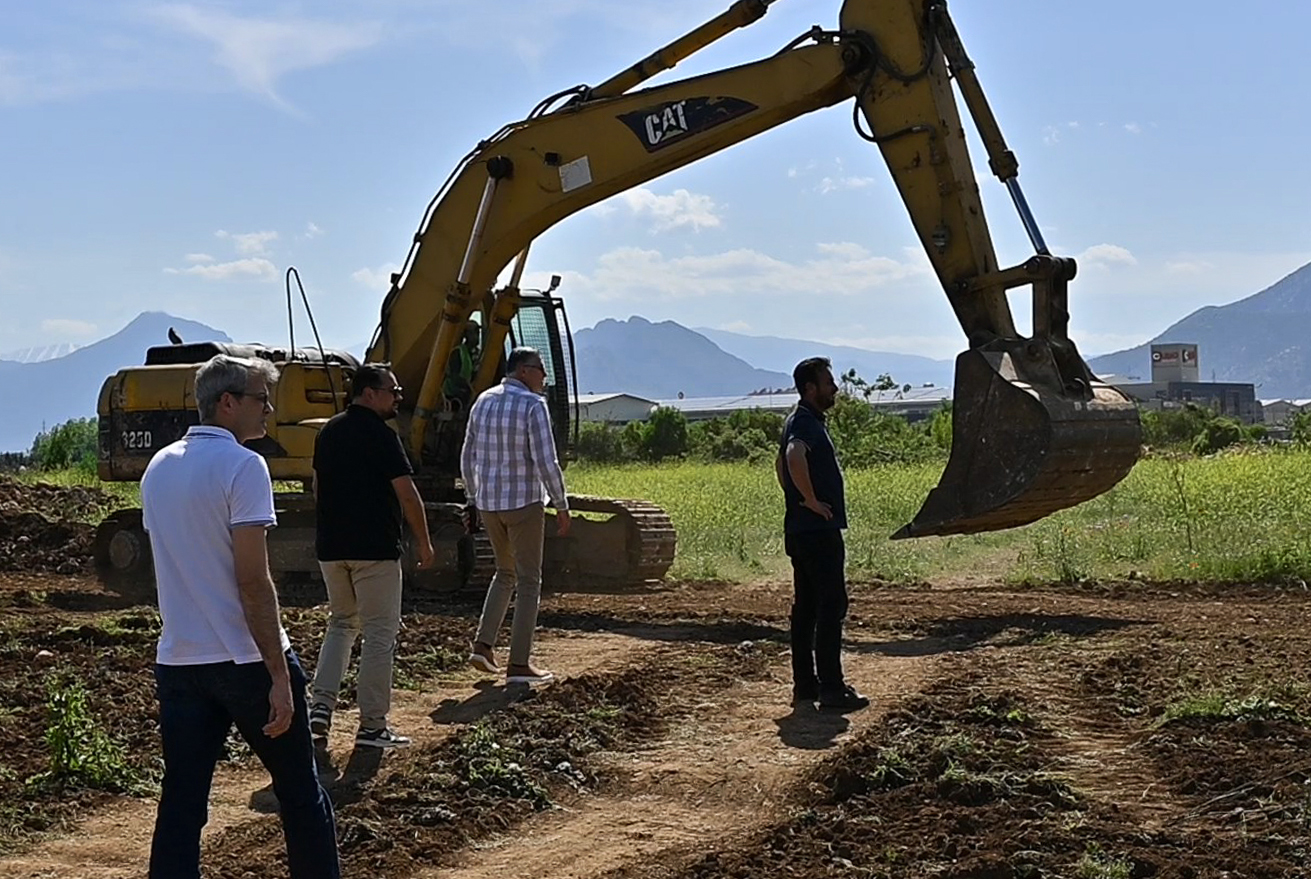 Antalya OSB Başkanı Hasanali Gönen, yapımı devam eden kreş ve gündüz bakımevi binası ile 5. tevsi alanı yol ve altyapı inşaatlarında incelemelerde bulundu.