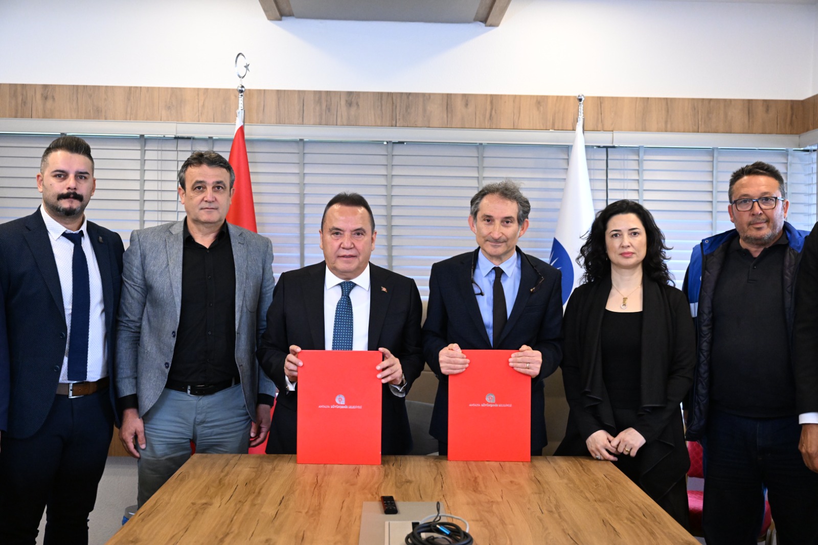 Antalya Büyükşehir Belediye Başkanı Muhittin Böcek, Büyükşehir Belediyesi ve ASAT bünyesinde 11 bin 79 İnsan Kaynakları Şirket personelinin maaş promosyonu imza törenine katıldı. Başkan Böcek promosyon ödemesi için yapılan ihaleyi kazanan Türkiye Ekonomi Bankası (TEB) Bölge Direktörü İbrahim Savaş ile Belediye İş Sendikası, Güvenlik İş Sendikası ve DİSK Genel İş Sendikası temsilcileriyle imza töreninde bir araya geldi.