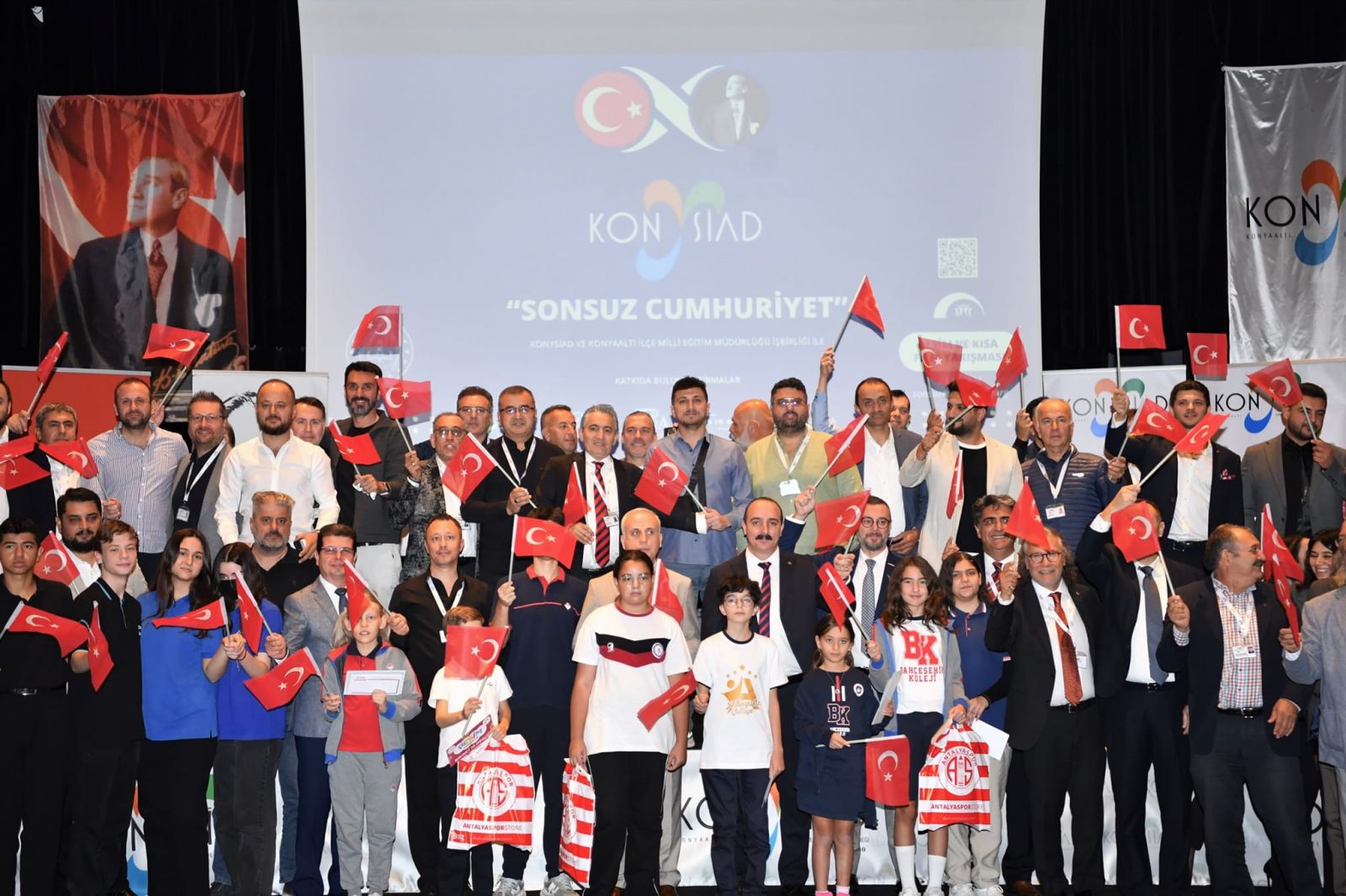 Konyaaltı Belediye Başkanı Cem Kotan, KONYSİAD ve Konyaaltı İlçe Milli Eğitim Müdürlüğü’nün düzenlemiş olduğu cumhuriyet temalı resim yarışması ödül törenine katıldı. Başkan Kotan, “Bu yarışma, Cumhuriyet değerlerini taşımada çok önemli bir adım. Ödül kazanan öğrencilerimizi tebrik ediyorum” dedi.