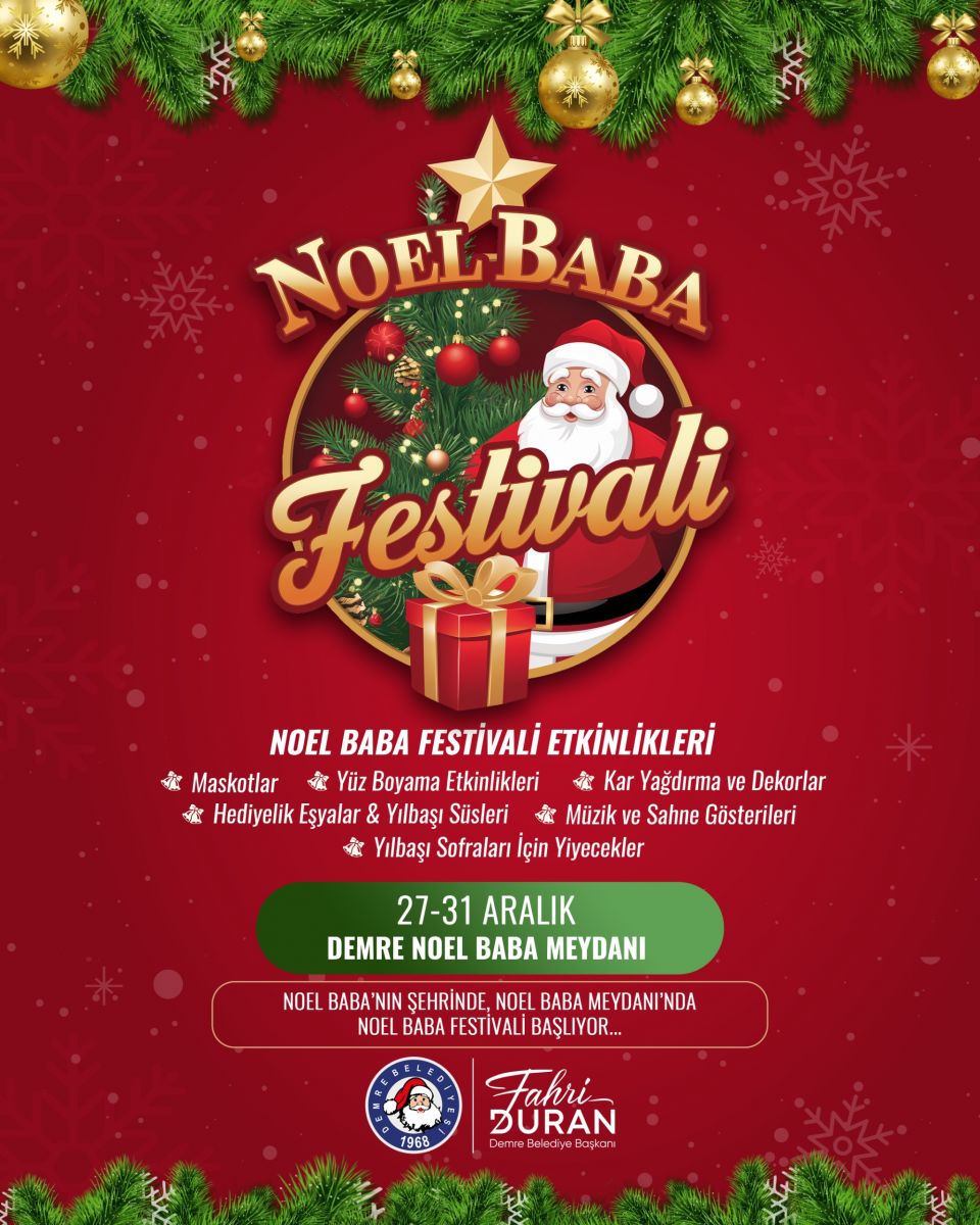 Dünyanın dört bir yanında barış, sevgi ve yardımlaşmanın simgesi olarak tanınan Noel Baba’nın memleketi Demre, bu yıl yeni bir heyecana ev sahipliği yapmaya hazırlanıyor. Demre Belediyesi, 27-31 Aralık tarihleri arasında ilk kez düzenleyeceği Noel Baba Festivali ile kentin eşsiz tarihini, kültürel mirasını ve yılbaşı coşkusunu bir araya getiriyor.