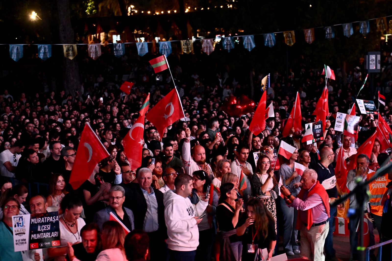 Başkan Uysal’ın konuşmasının ardından, festivale katılan şehirler, geleneksel kostümleri, ellerinde kendi ülkelerinin bayrakları ve Türk bayraklarıyla sahnede Antalyalıları selamladı.