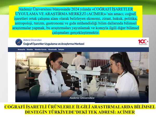 3. Üretici örgütlerin (Birlik ve/veya Kooperatif) tescil ettirenler arasındaki payının arttırılması, tescil sürecinde ihtiyaç duyulan teknik desteğin sağlanması gerektiğine dikkat çekilmiş, bu kapsamda Akdeniz Üniversitesi bünyesinde 2024 yılında kurulan «COĞRAFİ İŞARETLER UYGULAMA VE ARAŞTIRMA MERKEZİ (AciMER)»’in öneminden bahsedilmiştir.