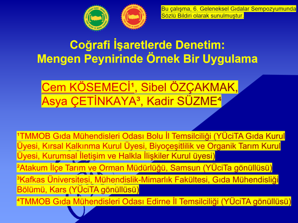 Etkinlikte, YÜciTA aktif gönüllü üyelerinden Doç.Dr. Sibel Özçakmak koordinasyonunda Gıda Yüksek Müh. Cem Kösemeci, Doç.Dr. Asya Çetinkaya ve Gıda Yüksek Müh. Kadir Süzme tarafından yürütülen iki önemli bilimsel çalışma (Süt İşleme Tesisi Olarak Faaliyet Gösteren Coğrafi İşaret (Cİ) Tescilli Peynir Üreticilerinin Güncel Durumu,