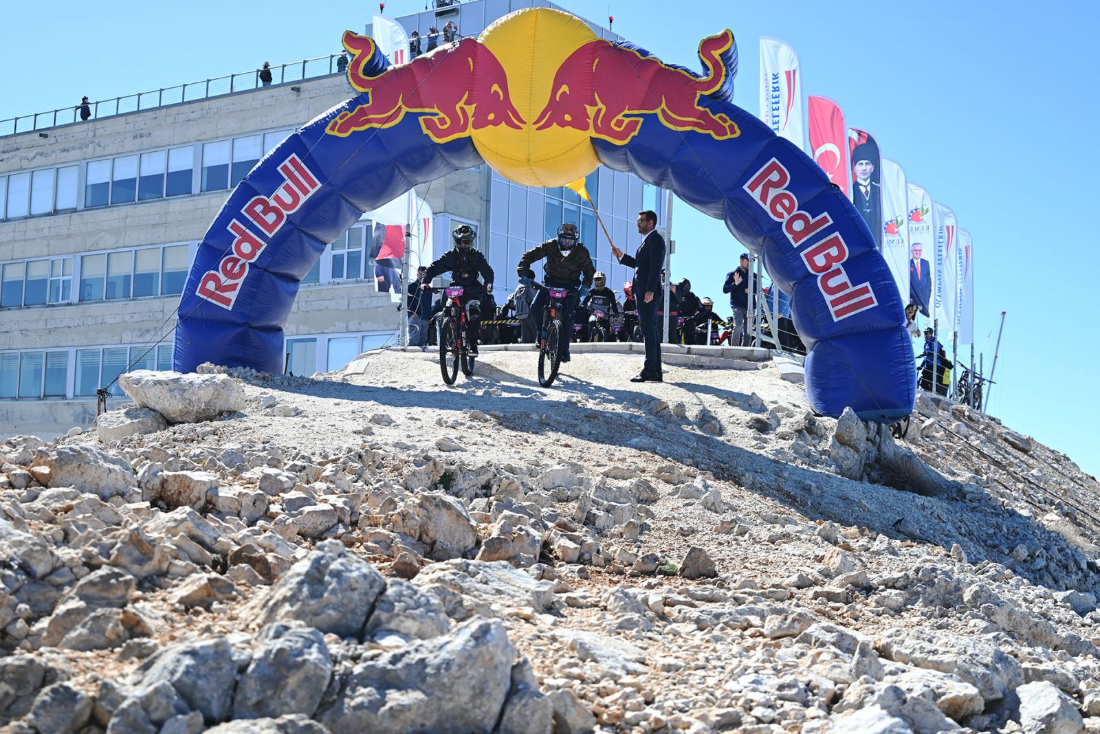 2 bin 365 metre yükseklikteki Tahtalı Dağı’nın zirvesinden başlayan yarışların startına, Kemer Belediye Başkan Vekili Cansın Efir, Kemer Belediye Başkan Yardımcısı Mehmet Derya Baytekin ve Olympos Teleferik Genel Müdürü Haydar Gümrükçü katıldı.